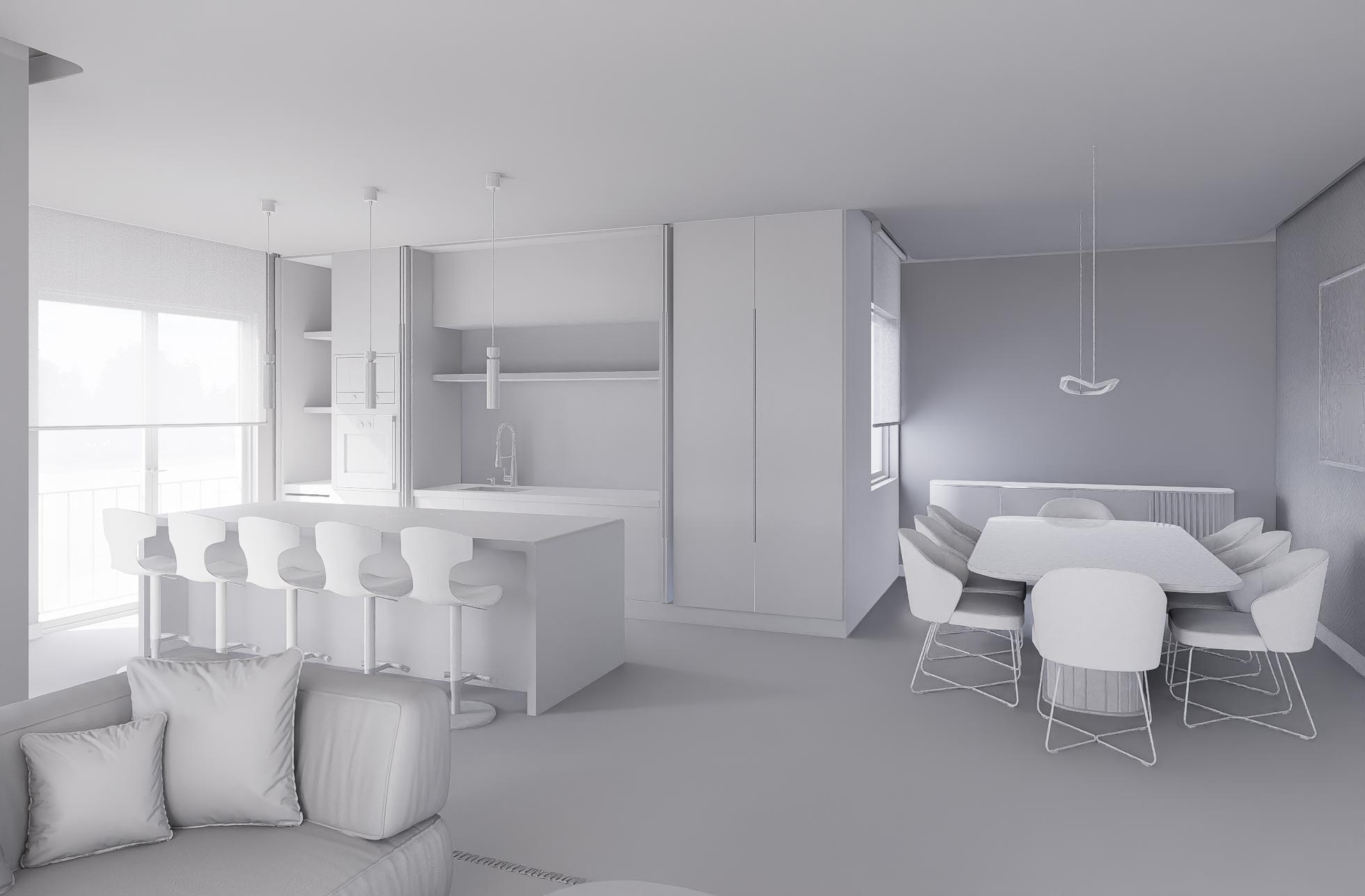 Clay 3D Models: Simplified 3D models focusing on spatial layout and form, without textures or lighting. Ideal for early-stage conceptual presentations and design reviews, enabling quick feedback and refinements.