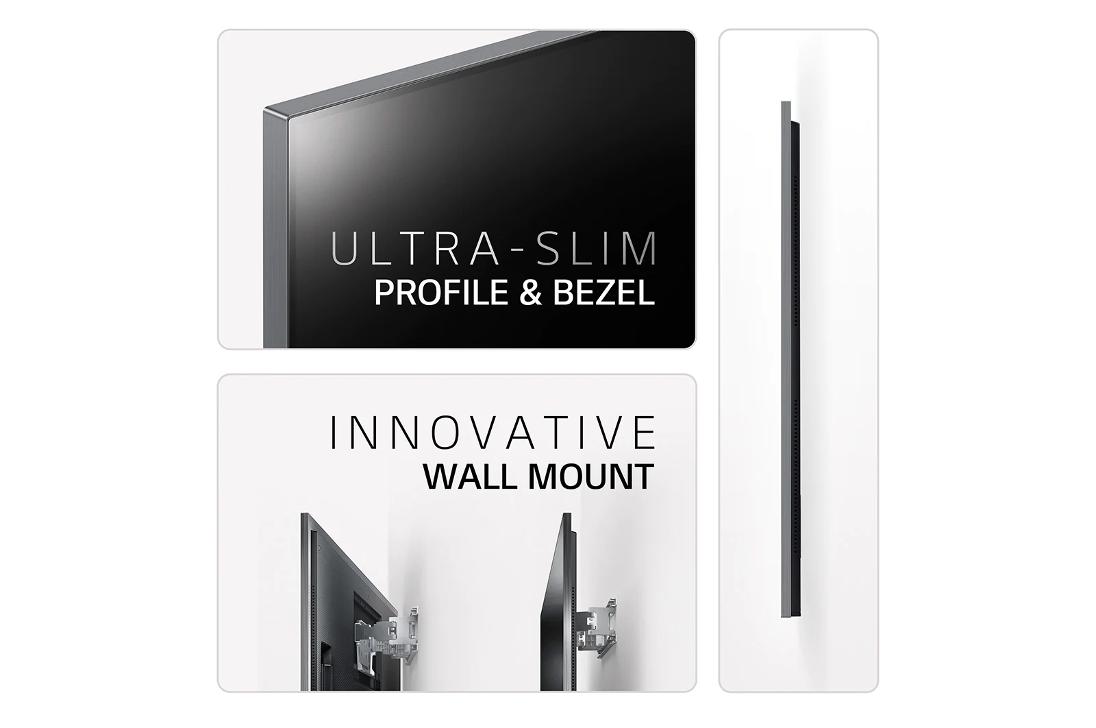 - Ultra slim gallery design & built-in flush fit wall mount