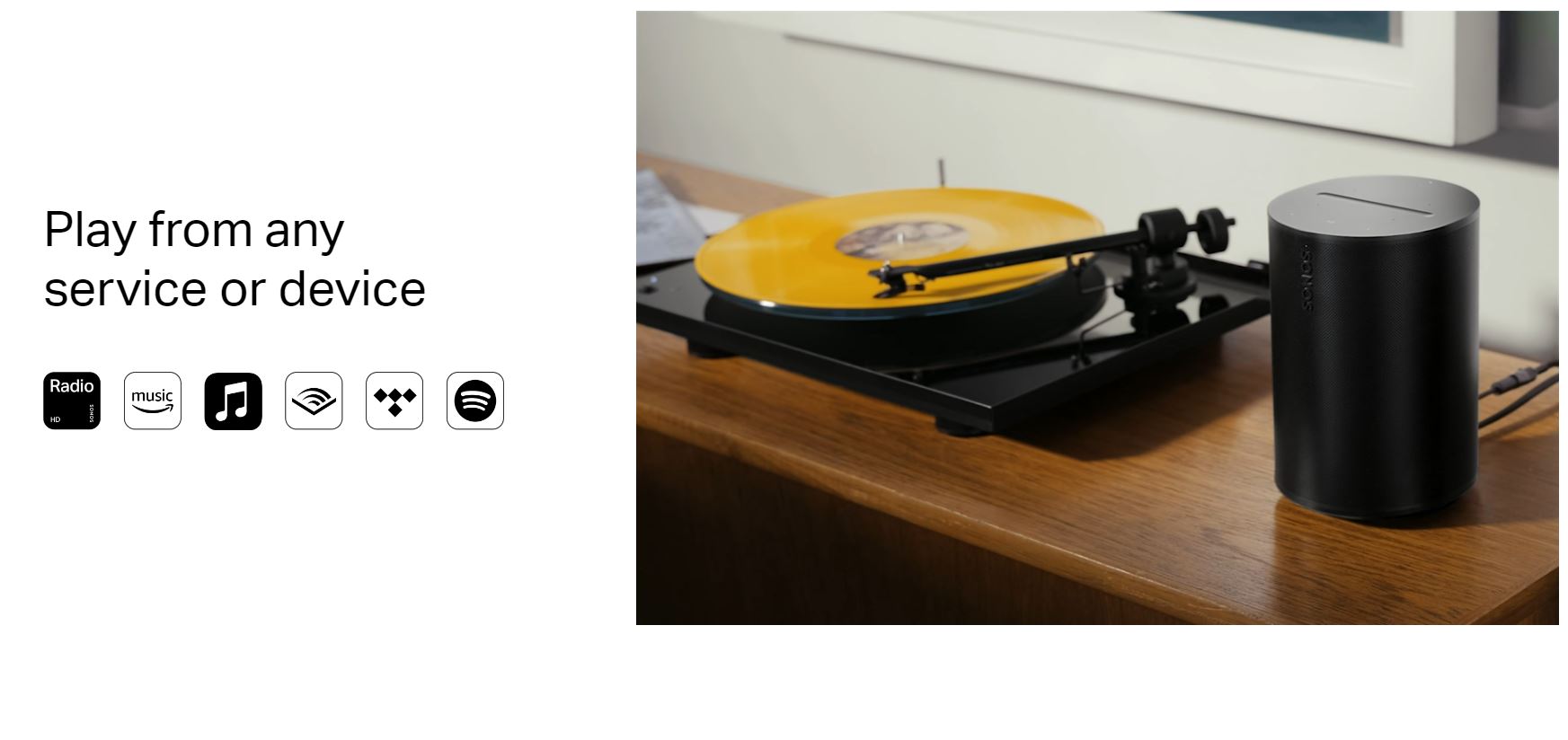 Bluetooth®. 1 Connect your turntable or other device using an auxiliary cable and the Sonos Line-In Adapter.2 Enjoy hands-free control with your voice. Pair two in the same room for even richer stereo sound or immersive home theatre surround sound. Add more Sonos speakers around your home for amazing sound in every room.