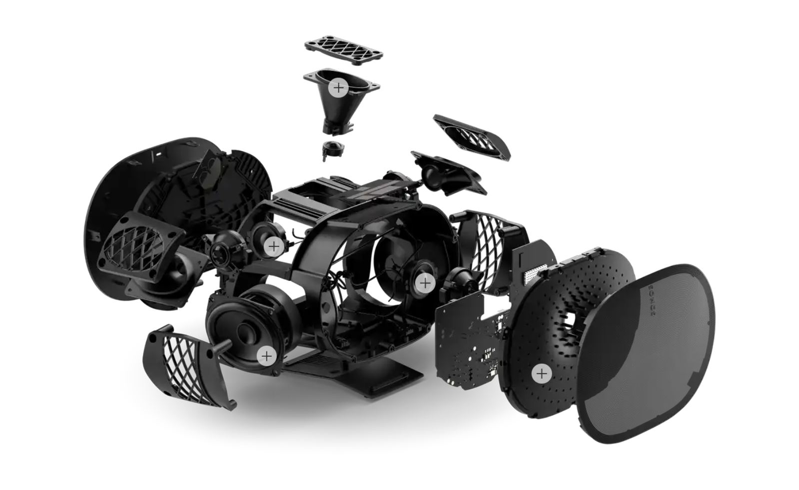 Six class-D digital amplifiers precision-tuned for the speaker's unique acoustic architecture power your sound experience.