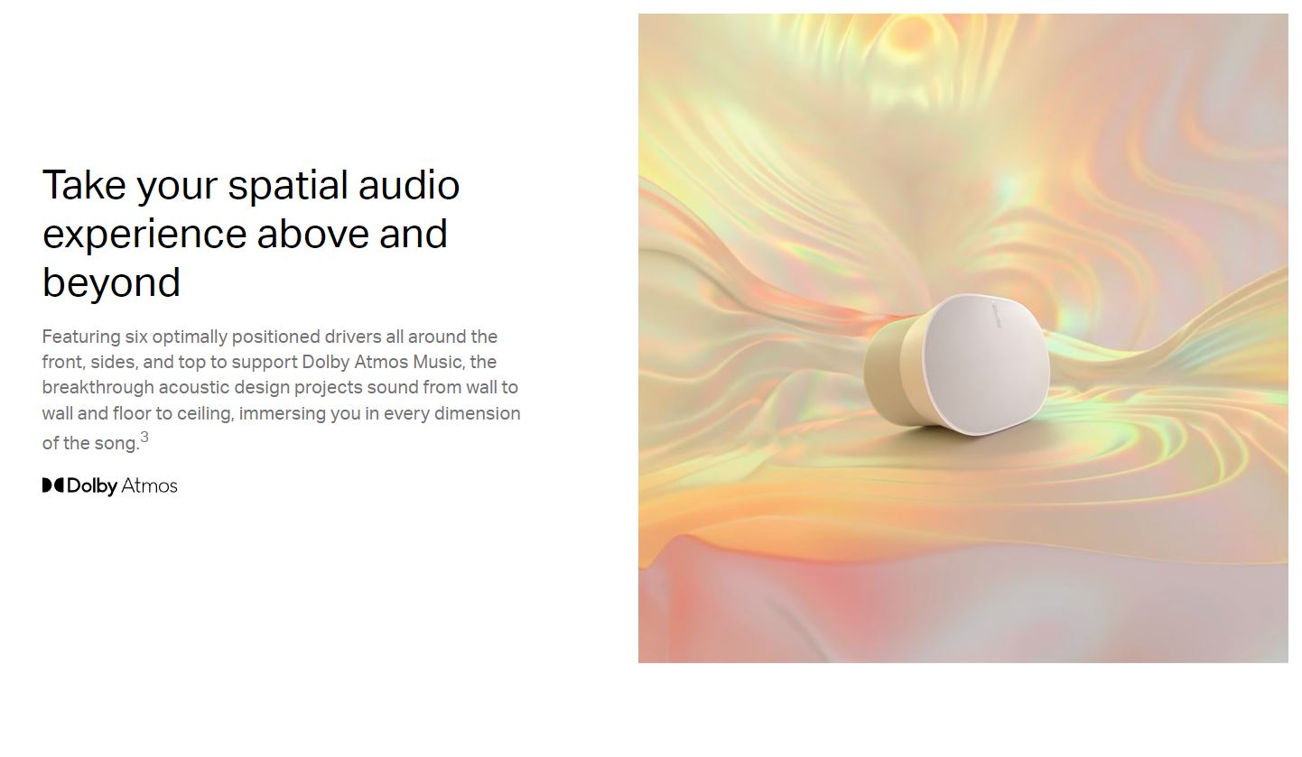 Feel more connected to all your audio content with phenomenally clear and spacious sound. Stream from all your favourite services and devices with WiFi and Bluetooth®. Connect a turntable or other audio source using an auxiliary cable and the Sonos Line-In Adapter. Experience mind-bendingly realistic surround sound when you pair two Era 300 speakers with Arc and stream spatial audio with Dolby Atmos. Set up is easy, and control is even easier with the Sonos app, next-generation touch controls, and your voice.