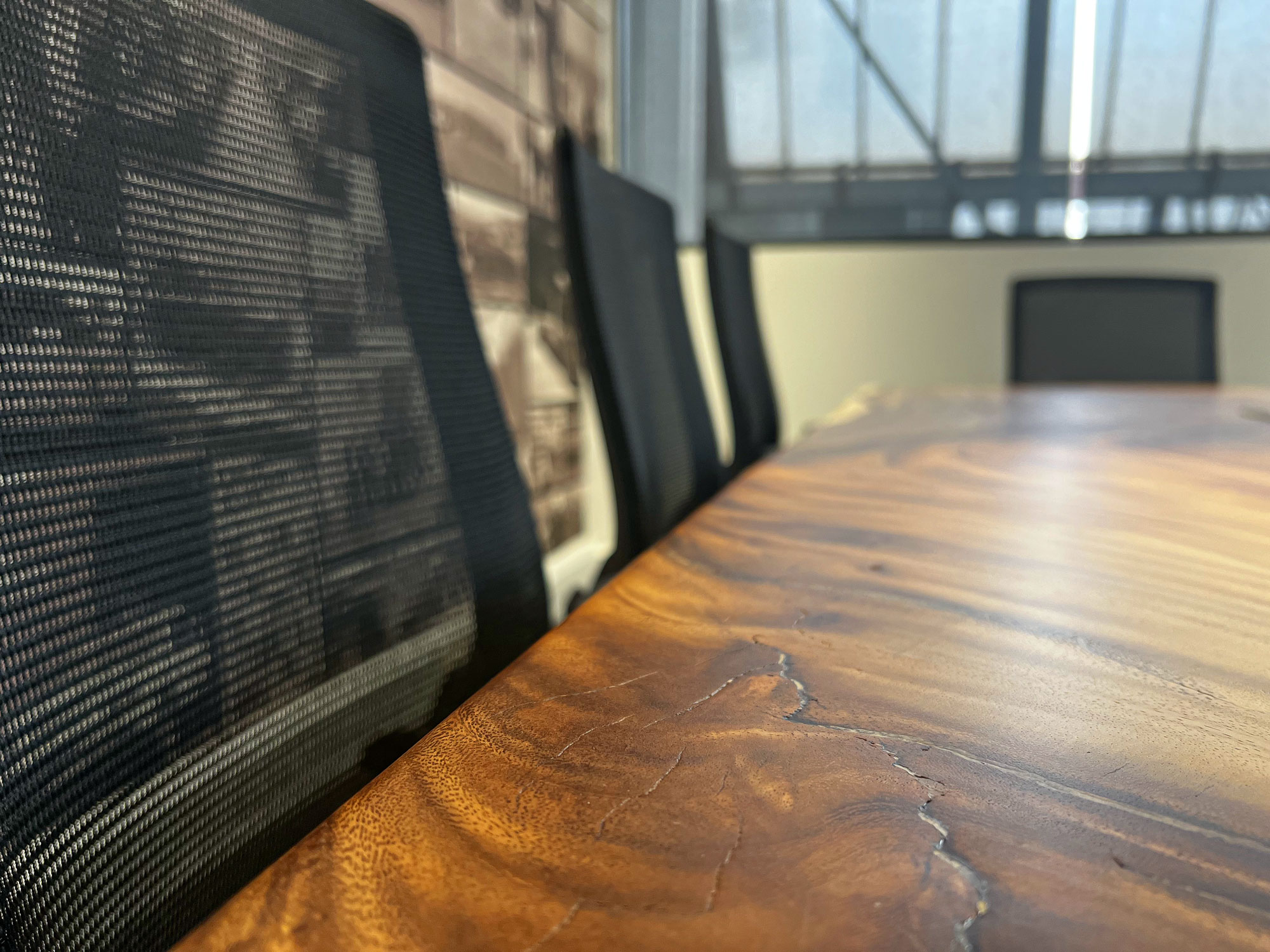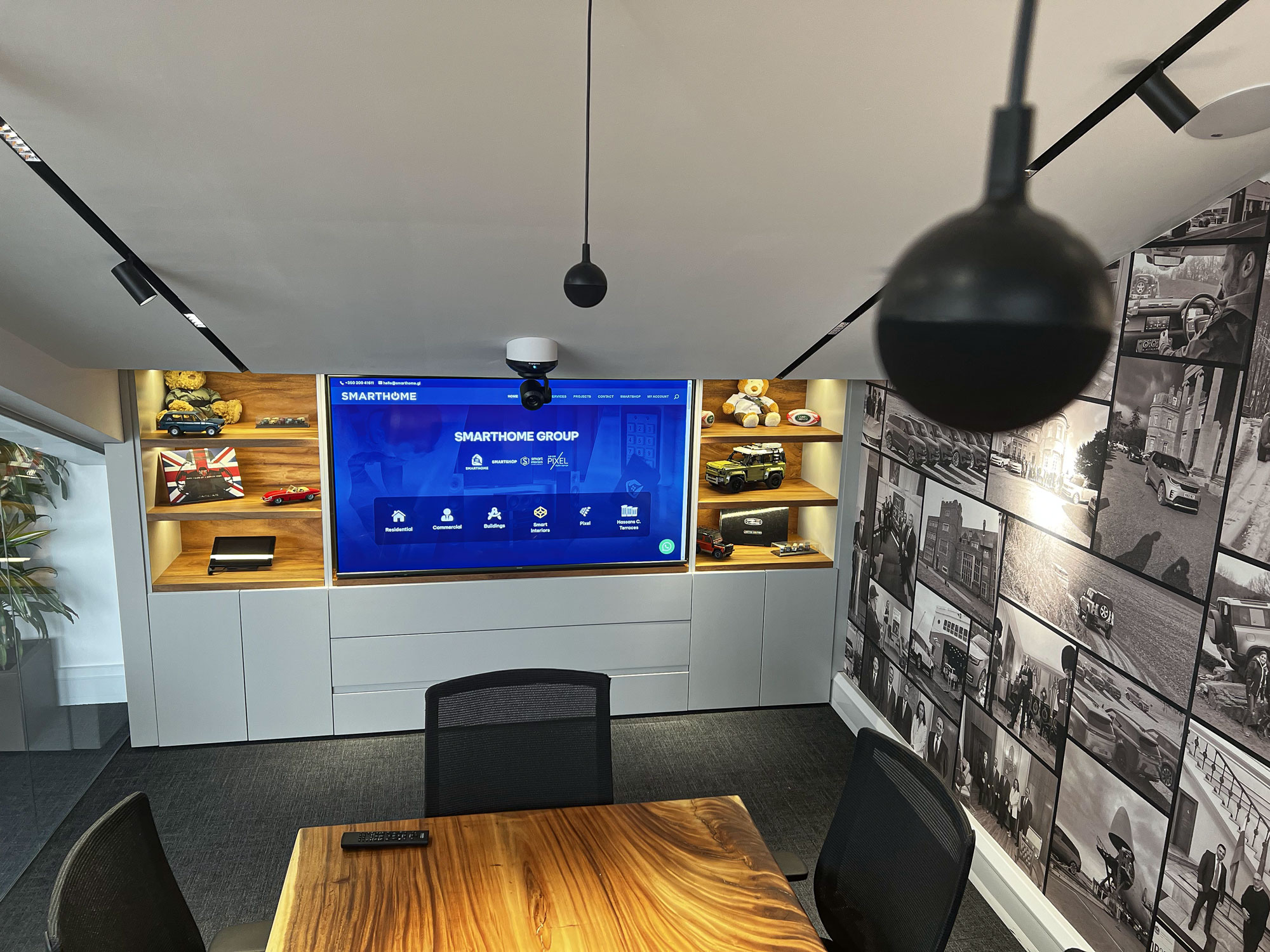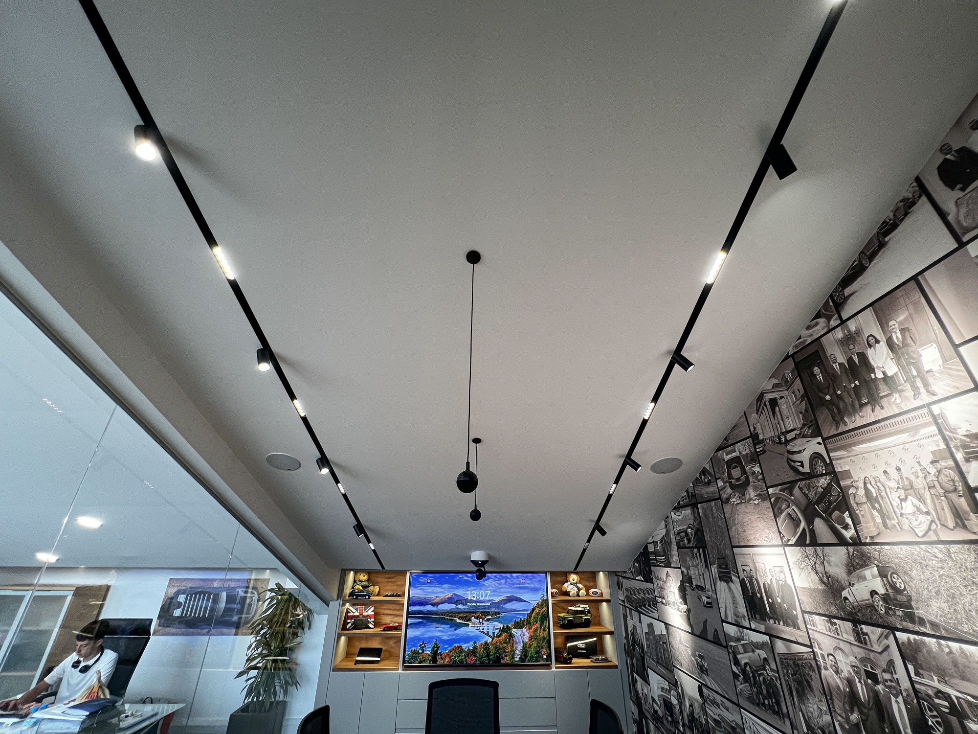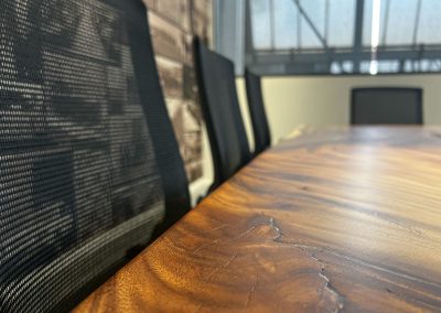 For our recent project, we integrated advanced technology solutions to create an innovative meeting space. Central to this is a professional videoconferencing system with high-end equipment, ensuring the best communication experience. We also incorporated smart glass to provide privacy to the room when needed. Complementing the technological features, we designed bespoke furniture and a conference table made from Samán wood from Indonesia, adding a unique and premium aesthetic to the space. As a final touch, we decorated the environment with wallpaper featuring photographs from various trips taken by the company’s representatives, capturing key moments when international agreements were made. This project seamlessly combines advanced technology with thoughtful design, reflecting the company’s global identity.