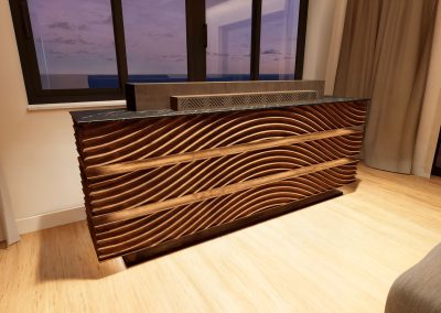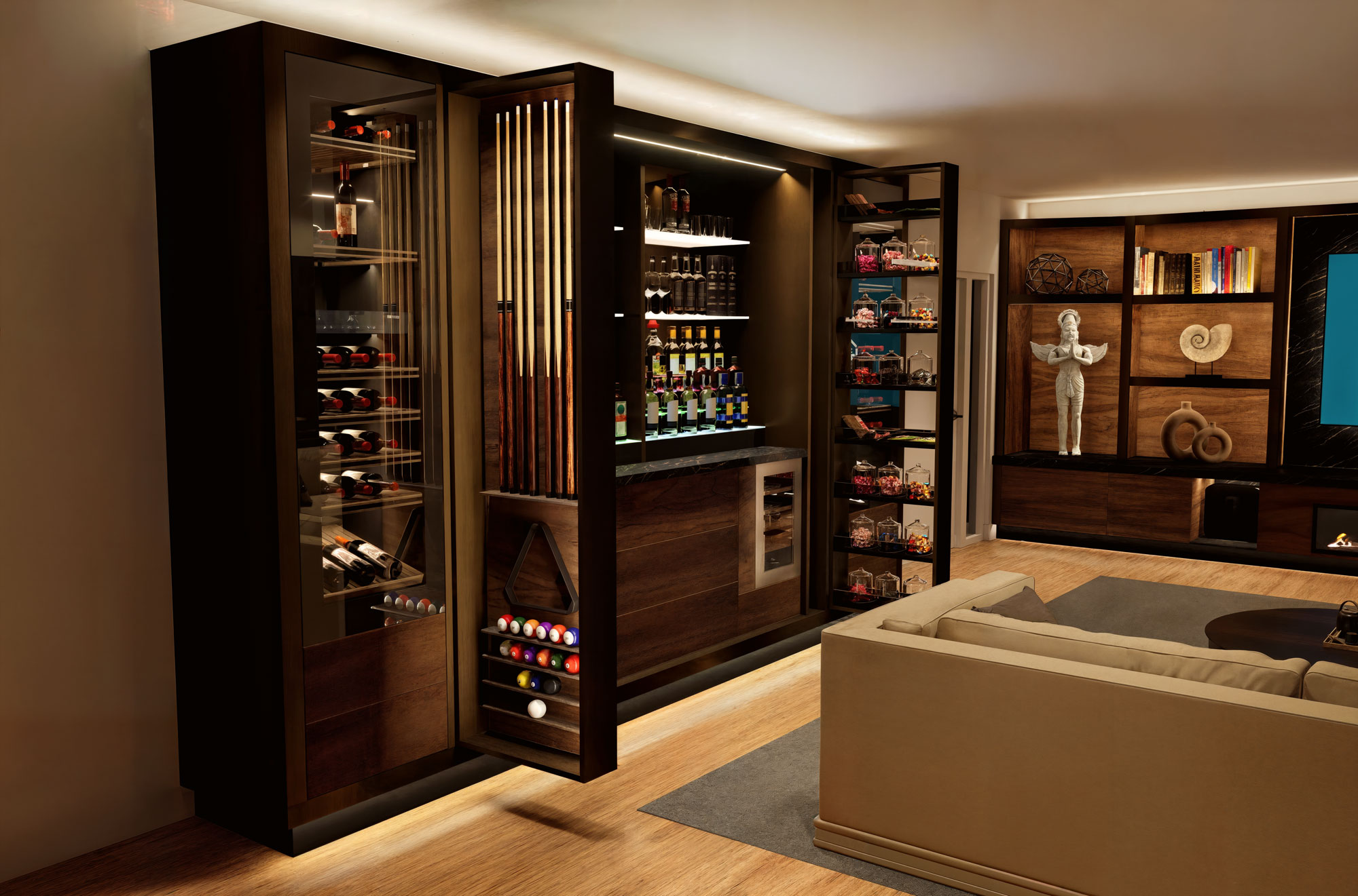 This high-end furniture project combines technological sophistication with exceptional materials to create a fully tailored interior experience.